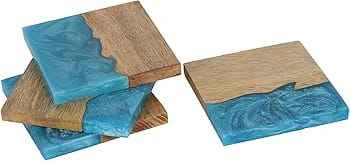งานฝีมือไม้ผสมเรซิ่น ของใช้ในครัว ที่รองแก้ว แผ่นรองแก้ว ชา กาแฟ นม ดีไซน์สวยงาม ทนทาน