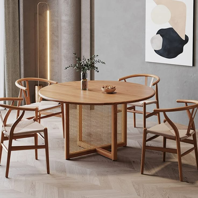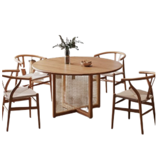 ชุดโต๊ะทานอาหารทำจากไม้หวายสำหรับบ้านและสวนโต๊ะ4-Seater วัสดุเป็นมิตรกับสิ่งแวดล้อมธรรมชาติเฟอร์นิเจอร์กลางแจ้งสำหรับร้านอาหาร