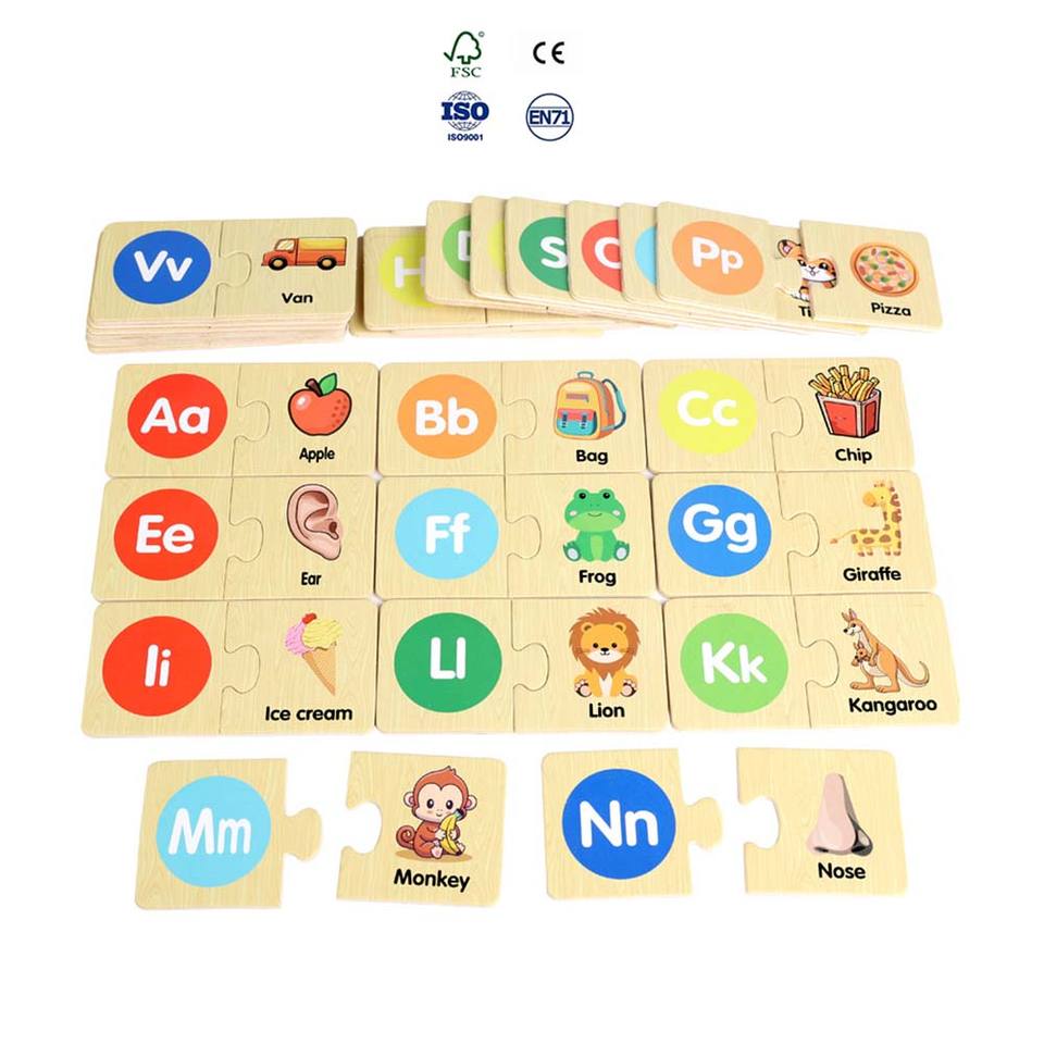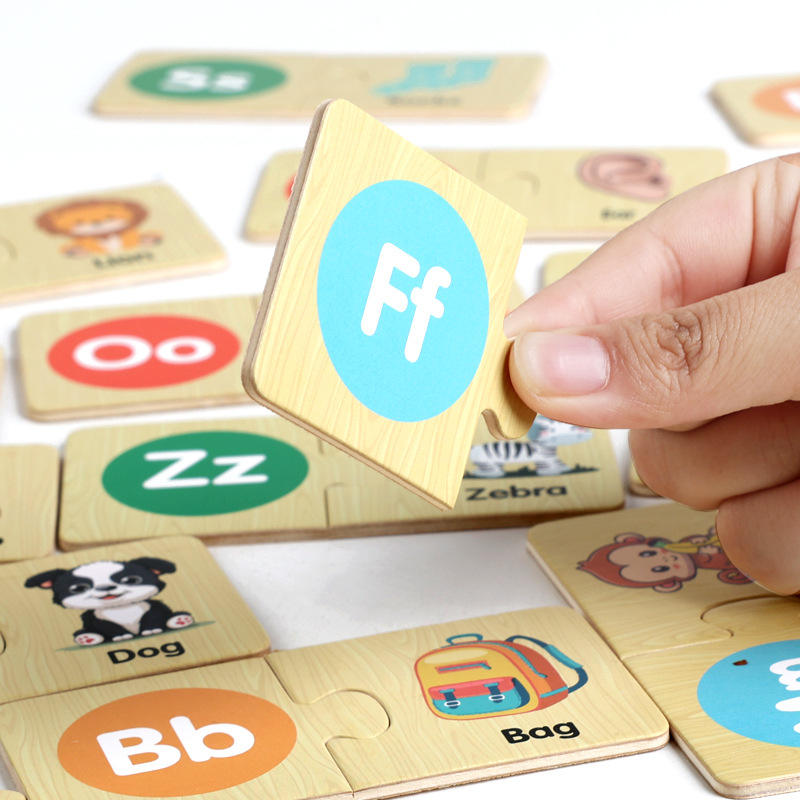 ปริศนาตัวอักษรไม้สำหรับเด็กอายุ4 + 26ชิ้นปริศนาตัวอักษรภาษาอังกฤษ ABC ปริศนาทางปัญญา Montessori การเรียนการสอนเอดส์
