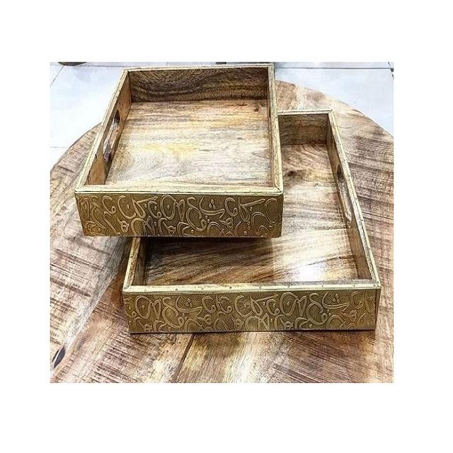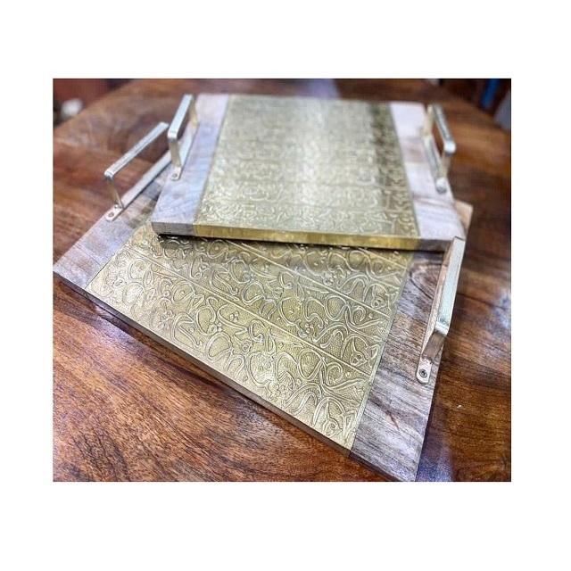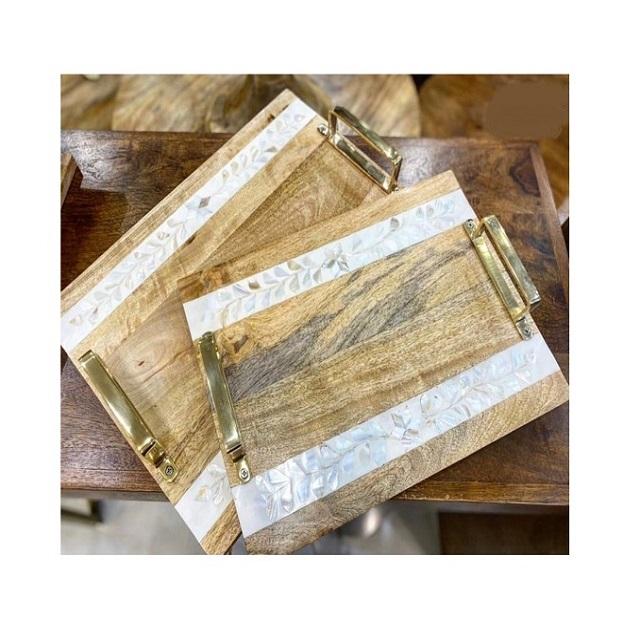 ถาดเสิร์ฟอาหารงานไม้และแม่มุกพร้อมด้ามทองเหลืองถาดเสิร์ฟอาหารปรับขนาดและรูปร่างได้ตามต้องการ