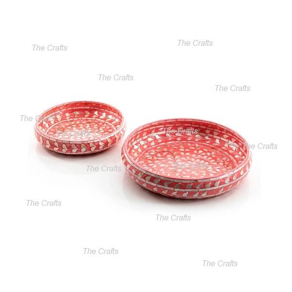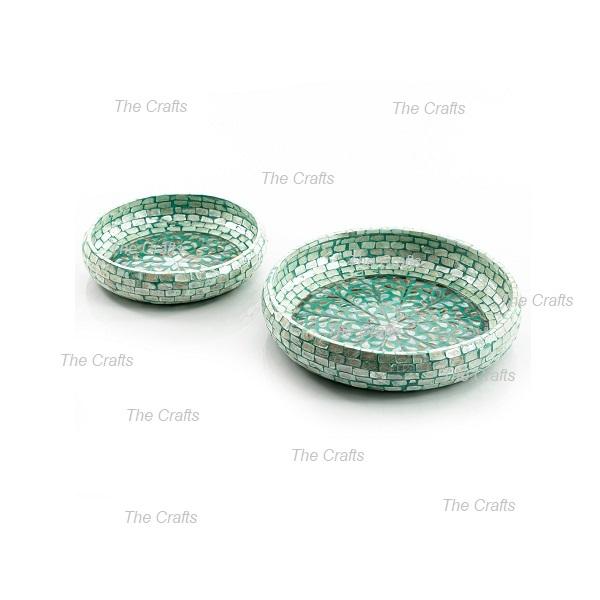 ชุดชามขนมและช็อคโกแลตสองทรงกลมทำจากไม้ขัดเงาและแม่ของไข่มุกเป็นมิตรต่อสิ่งแวดล้อม