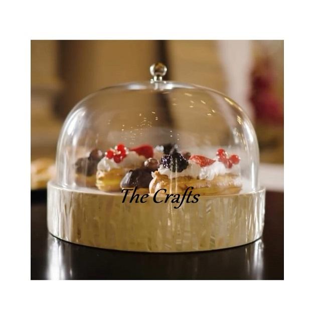 ถาดเสิร์ฟขนมงานทำจากไม้และไข่มุกพร้อมโดมหรูหราถาดเสิร์ฟพร้อมโดมแก้ว