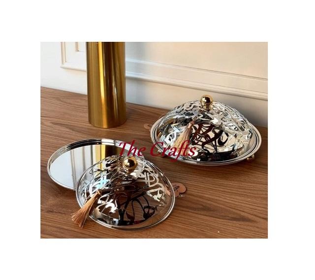 จานเสิร์ฟพร้อมโดมทำจากไม้และไข่มุกพร้อมโดมอะคริลิค