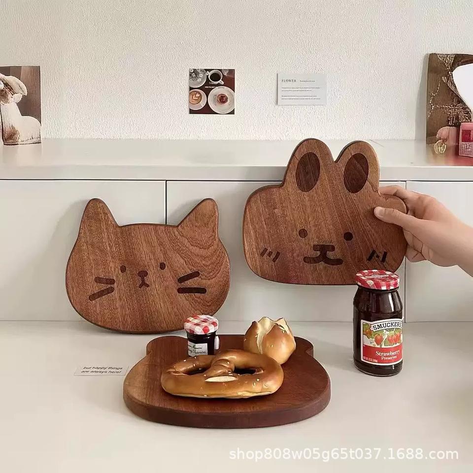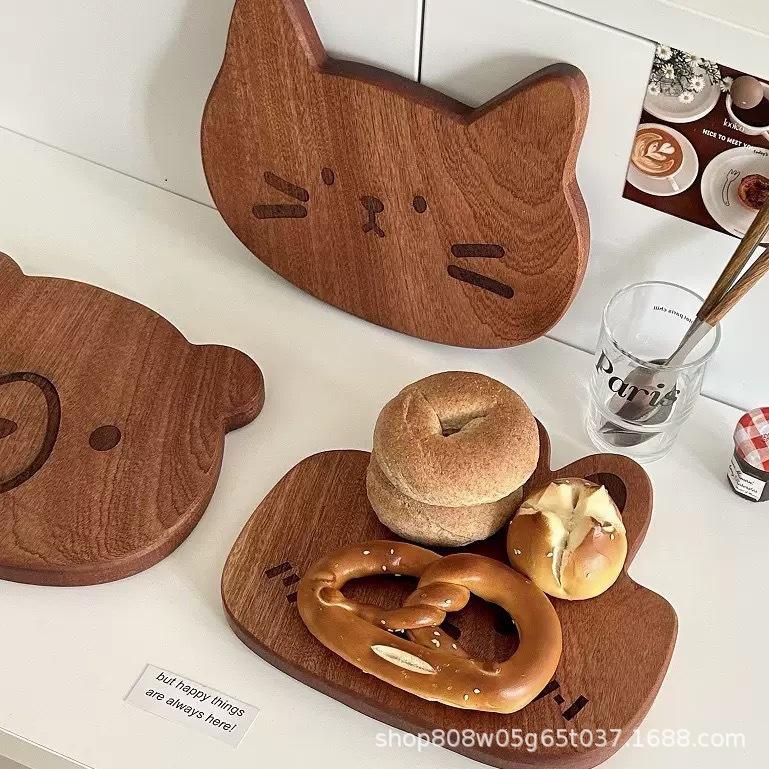 ถาดไม้รูปหน้าสัตว์ จานขนมหวานไม้เนื้อแข็ง ดีไซน์การ์ตูน ถาดเสิร์ฟบนโต๊ะ สีเรโทร