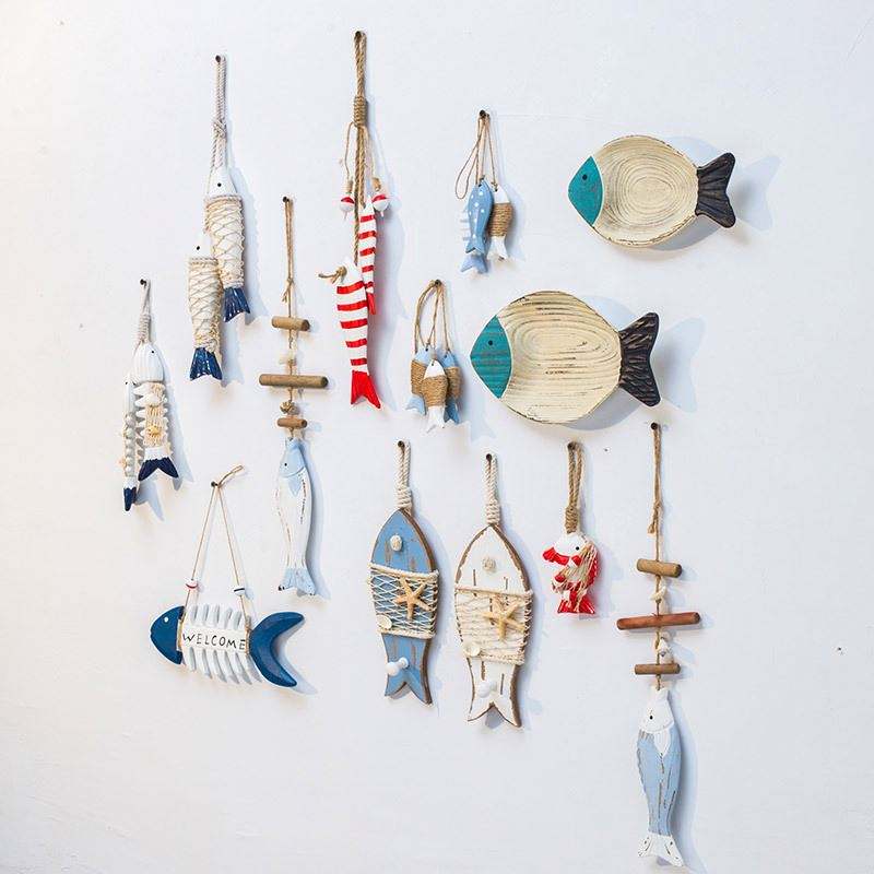 ของตกแต่งแนวโบราณทำจากไม้แบบเมดิเตอร์เรเนียนไม้ทึบแกะสลักปลาสำหรับใช้ในครัวเรือน