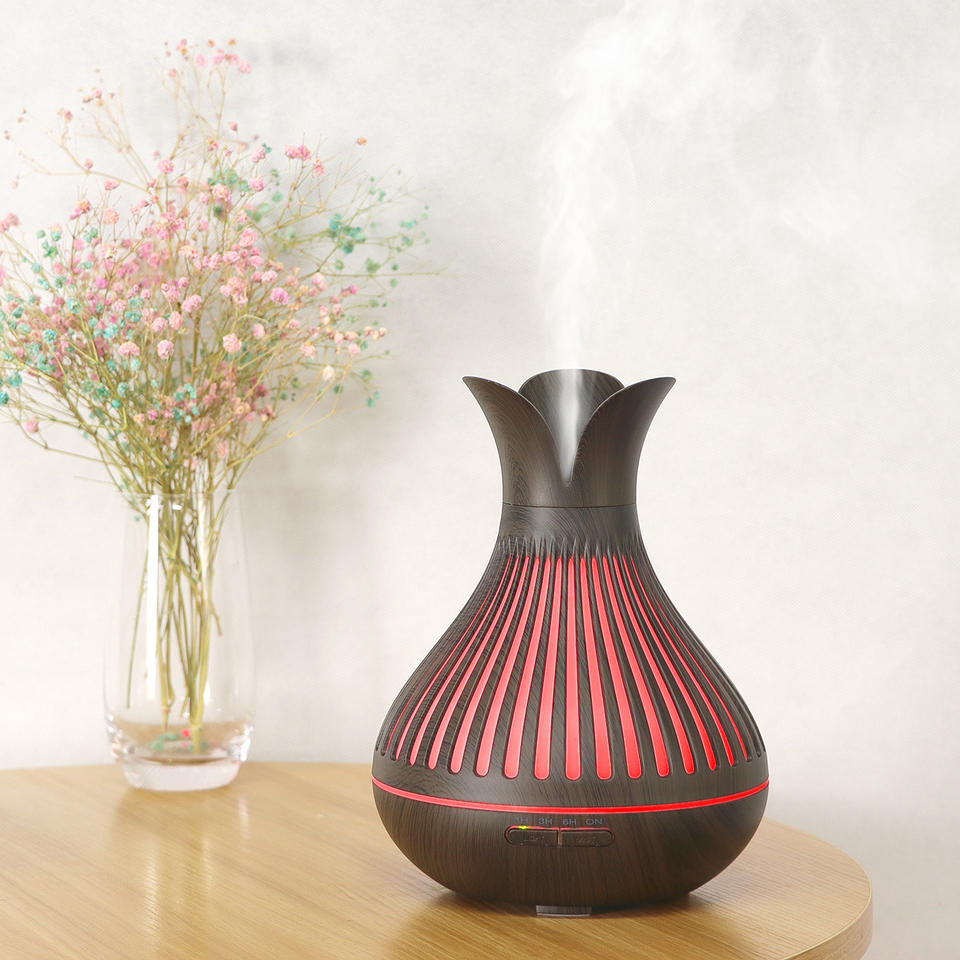 เครื่องกระจายกลิ่นหอมไม้ 500 มล. ใช้พลังงานจากยูเอสบี พร้อมรีโมทคอนโทรล เครื่องเพิ่มความชื้นแบบพ่นหมอก สำหรับใช้ในบ้านและสำนักงาน