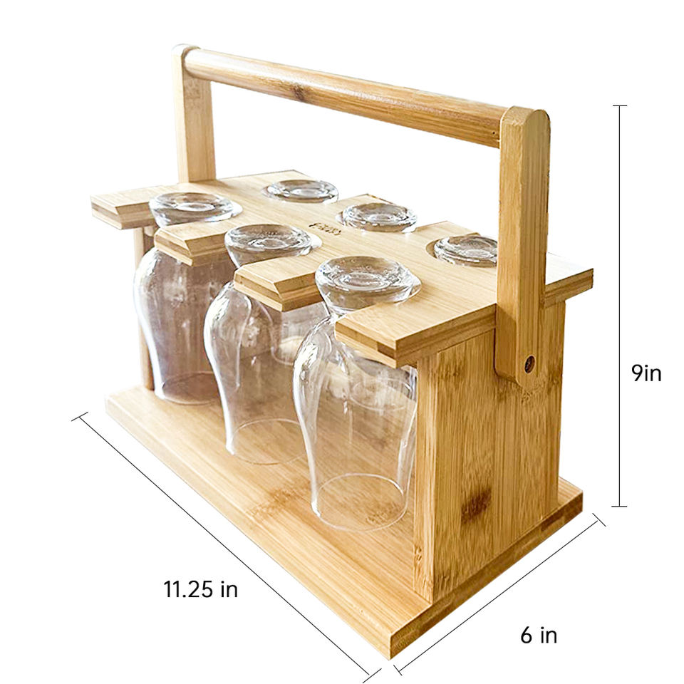 ชั้นวางเครื่องดื่มแบบตั้งโต๊ะทำจากไม้ไผ่6ขวดพร้อมที่วางแก้วสำหรับตั้งแคมป์