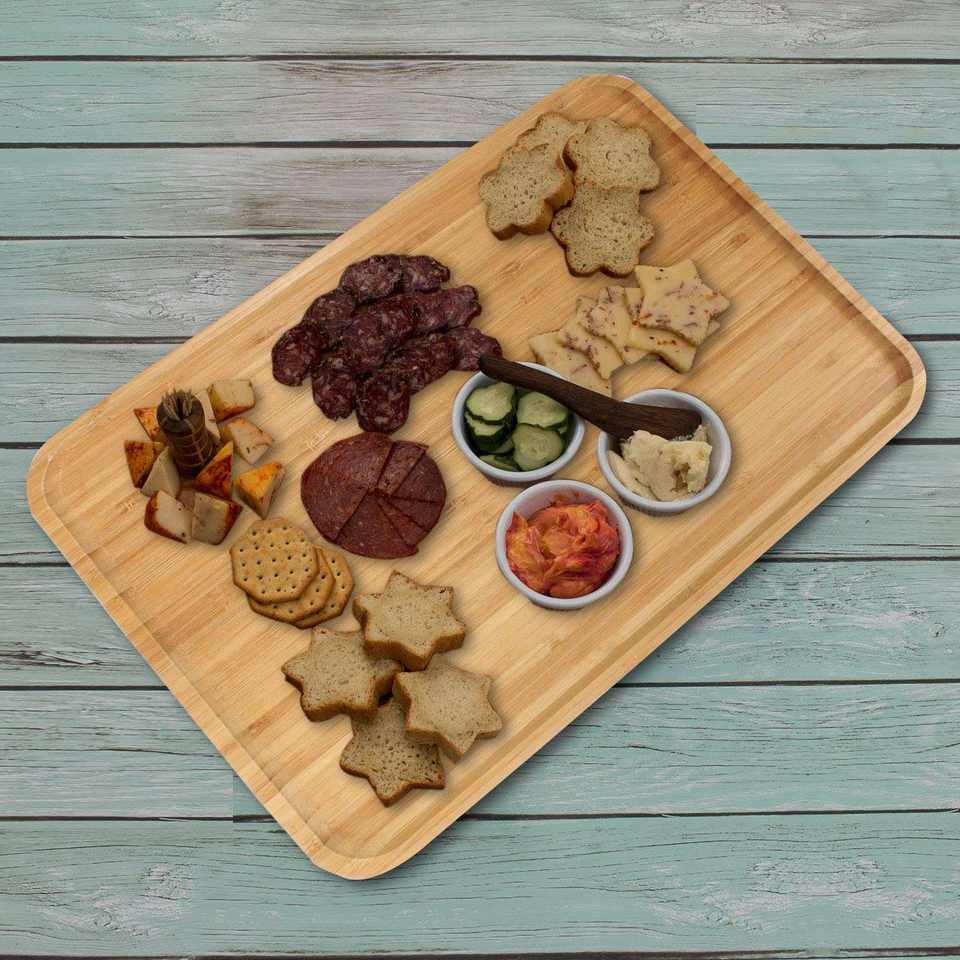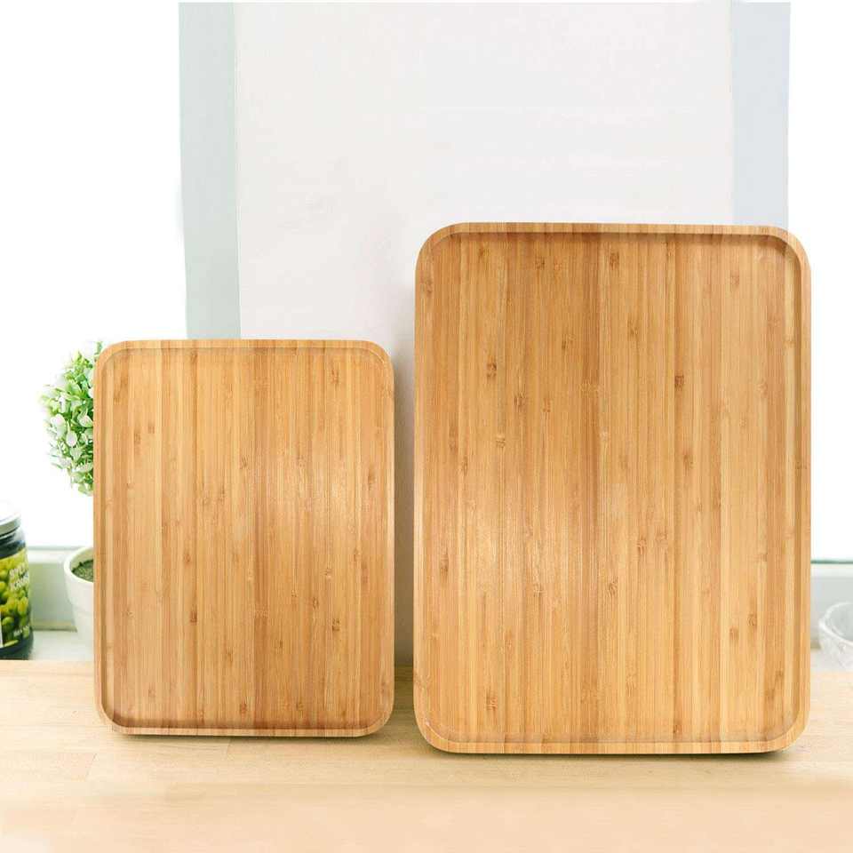 Wooden Bamboo Serving Tray Natural Eco-Friendly Rectangular Food Tea Serving Platter for Kitchen Dining Home Decor