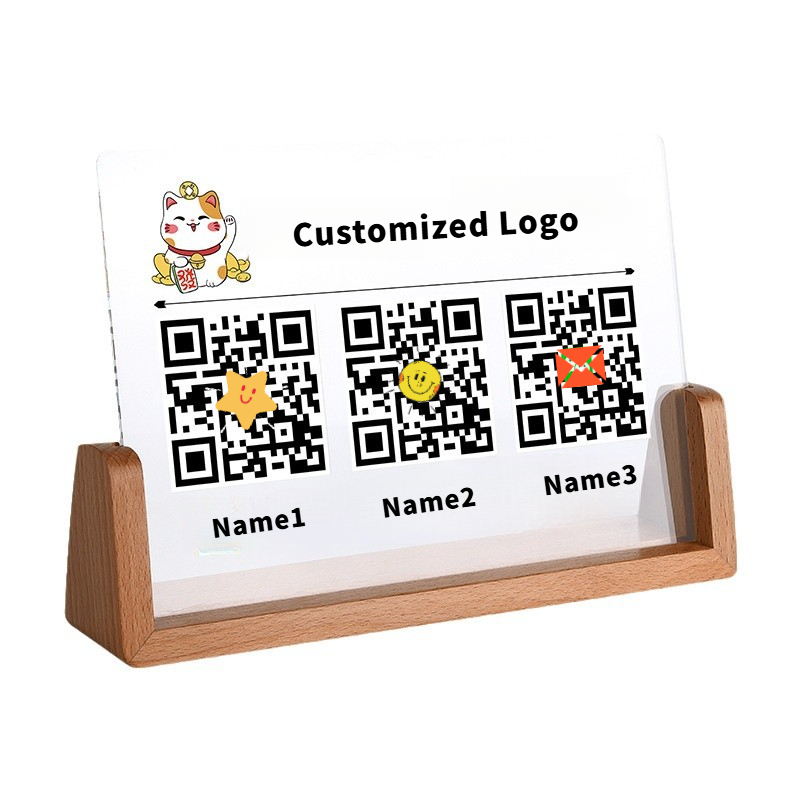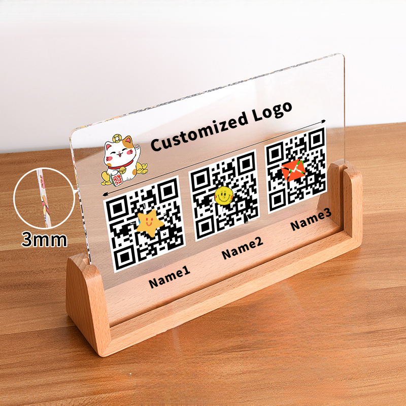 ฐานไม้แสดงบัตรรูปภาพสำหรับร้านอาหารเดสก์ท็อปแท่นวางรหัส QR