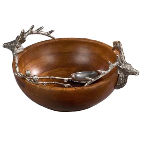 ชามไม้อาหารเย็นโลโก้ที่กําหนดเองโต๊ะรับประทานอาหารสลัดผลไม้ที่มีกวางกวางจับอาหารเย็นใช้การออกแบบด้านบน