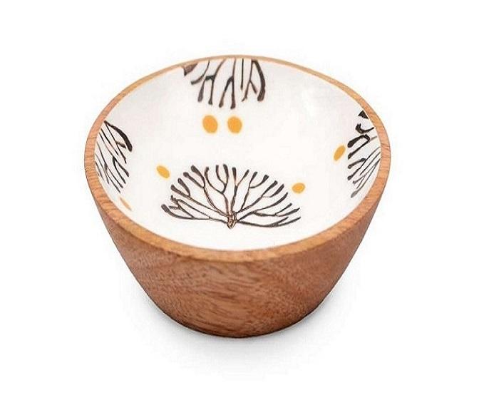 ชามไม้ใส่สลัดผลไม้พิมพ์ลายใบไม้เคลือบชามสลัดผลไม้