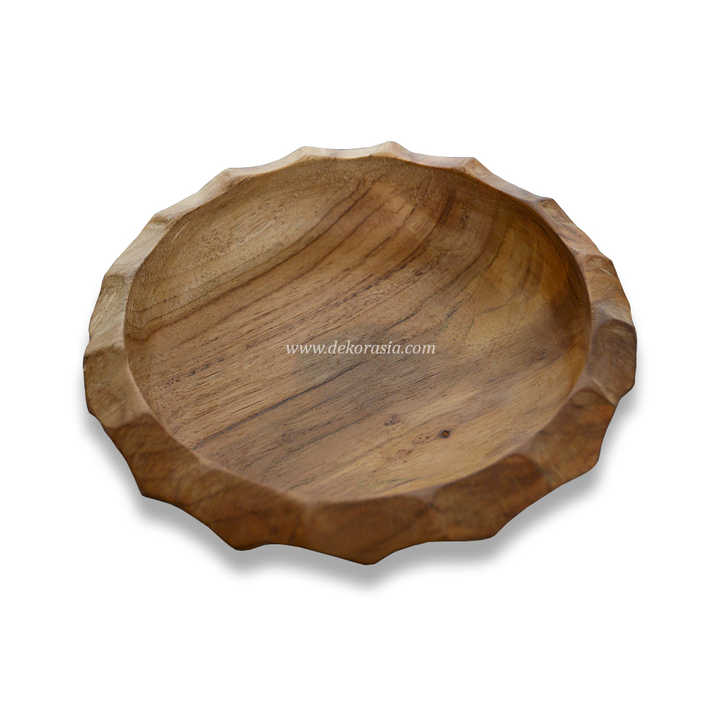 ชุดชามสลัดไม้ทรงกลมสำหรับเสิร์ฟอาหารชุดจานชามไม้สำหรับซุปและซุปดีไซน์วินเทจแกะสลักด้วยมือ