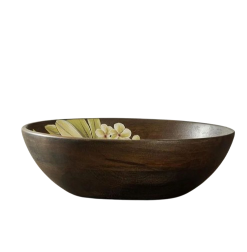 ชามสลัดไม้ทำด้วยมือเป็นมิตรกับสิ่งแวดล้อมสำหรับร้านอาหารโรงแรมดีไซน์ดอกไม้ใบไม้มะม่วงสไตล์โบฮีเมียนตกแต่งได้อย่างทนทาน