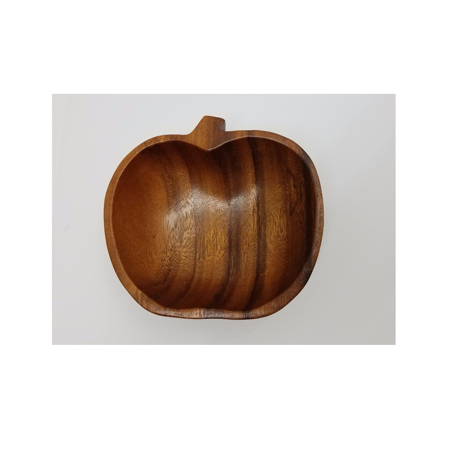 ชามไม้รูปทรงแอปเปิ้ลสีน้ำตาลสำหรับบ้านไร่ออกแบบเองทำด้วยมือในอินเดีย