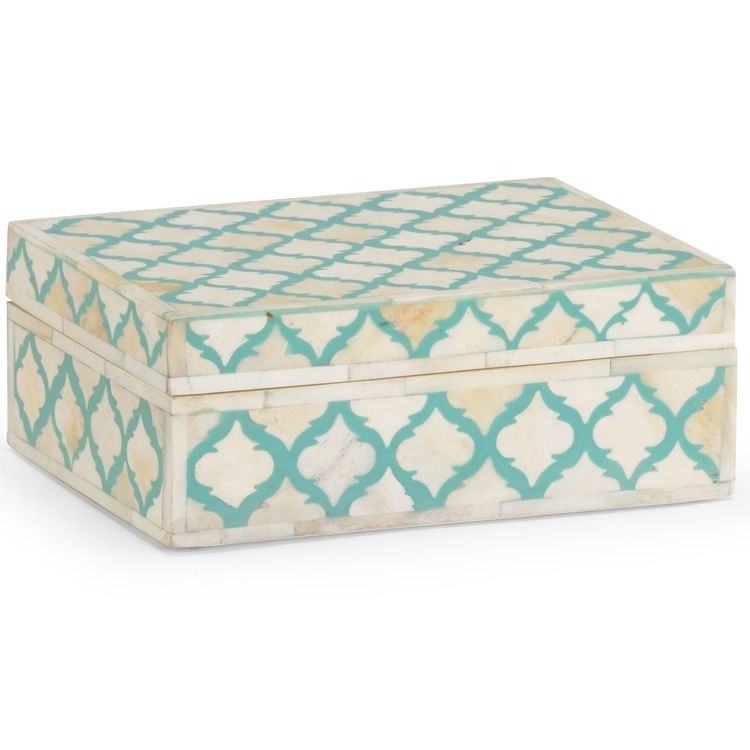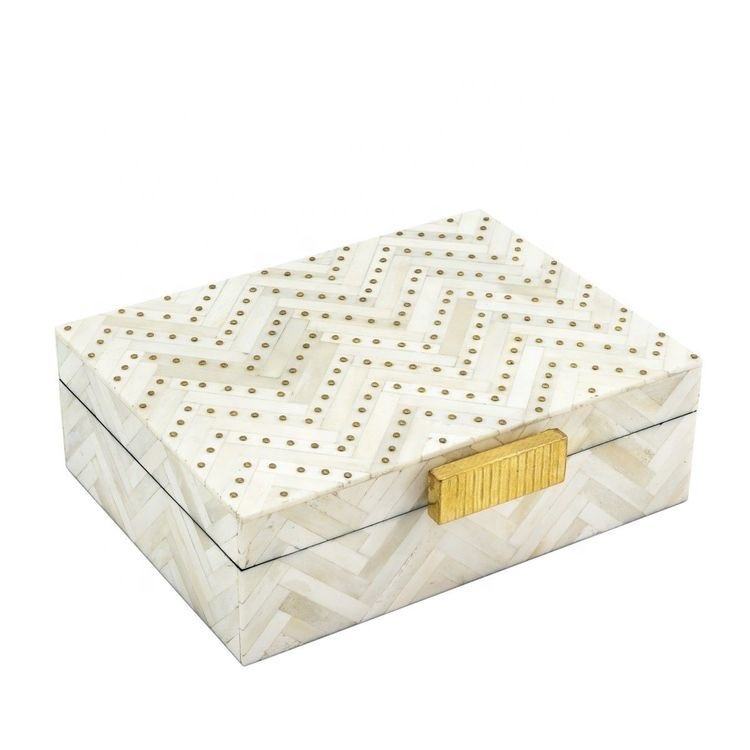 กล่องไม้ประดับกระดุมทองเหลือง กล่องไม้ตกแต่งลายจุดเล็กๆ ชุดกล่องและถาดสำหรับใช้ในบ้าน
