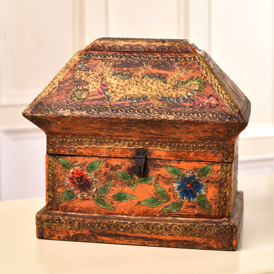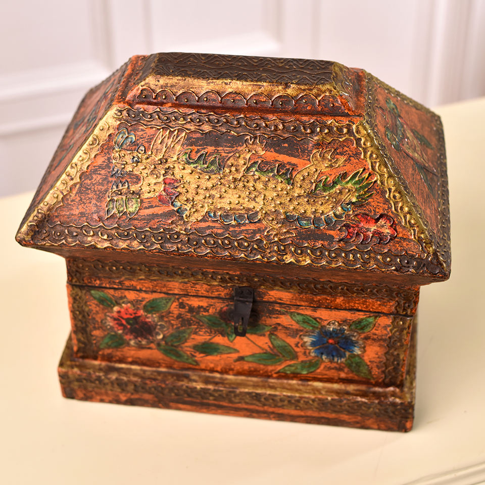 กล่องไม้สำหรับจัดเก็บของตกแต่งบ้านลายมังกรหลากสีกล่องไม้เครื่องประดับดีไซน์มังกร