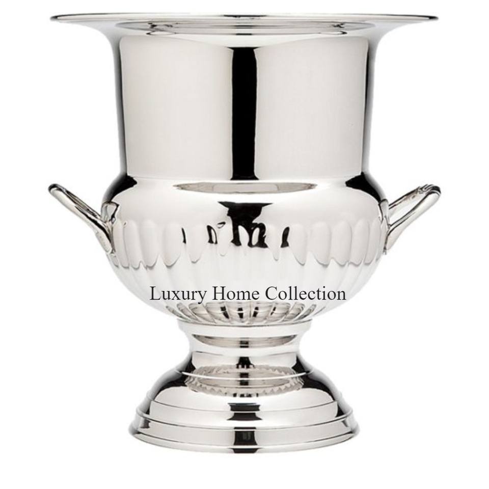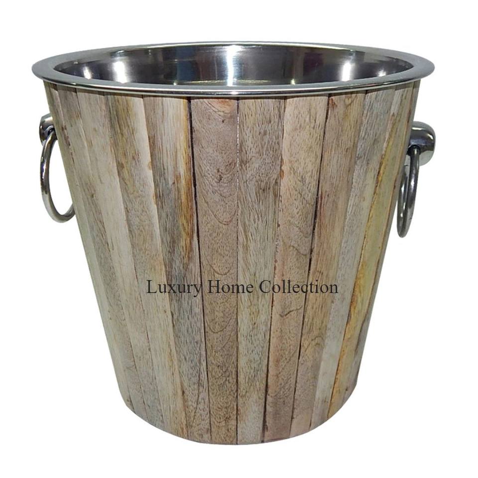 ตู้แช่ไม้สีน้ำตาลสำหรับแช่น้ำแข็งและแชมเปญถังทรงกลมพร้อมฝาปิดอ่างเครื่องดื่มและถังไวน์ตั้งโต๊ะ