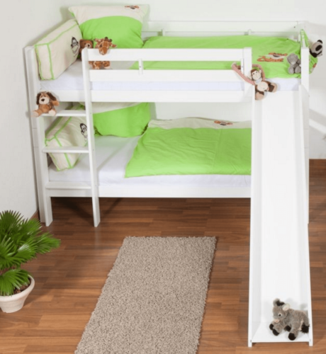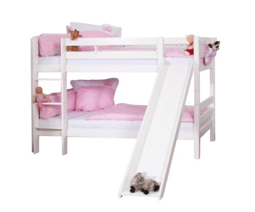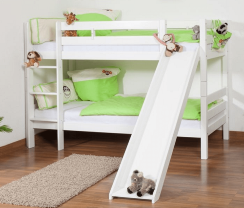 เตียงสองชั้นไม้จริงสีขาวแบบขยายได้สำหรับเด็กผู้ชาย เฟอร์นิเจอร์บ้านสไตล์โมเดิร์น