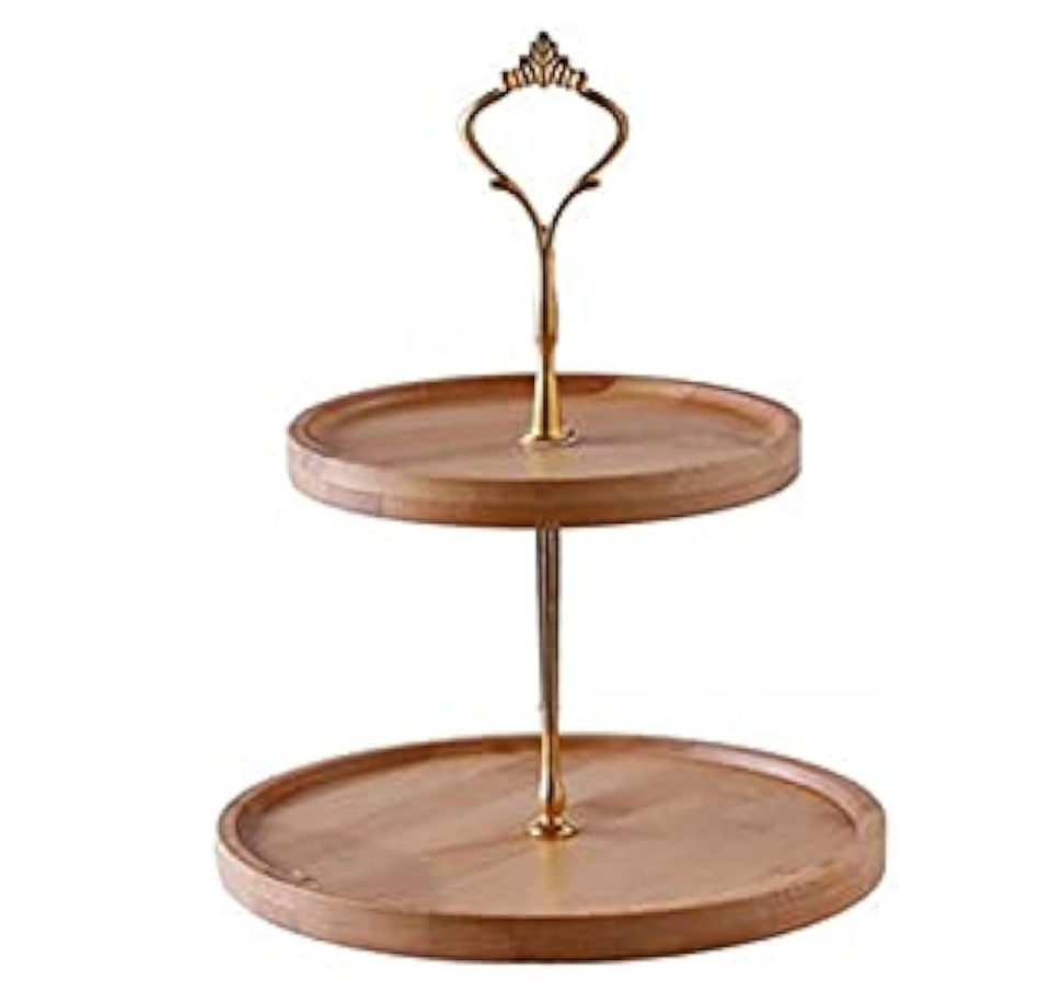 ไม้วางเค้กทำจากทองเหลือง2ชั้นตกแต่งโต๊ะและงานเลี้ยงวันเกิดเครื่องใช้บนโต๊ะอาหาร
