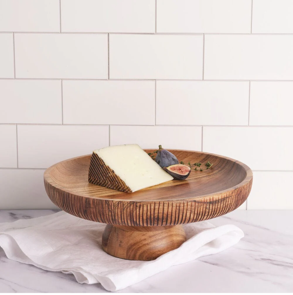 แท่นวางเค้กไม้อะคาเซียที่ตั้งแสดงบนโต๊ะของหวานชุดเสิร์ฟเค้กไม้