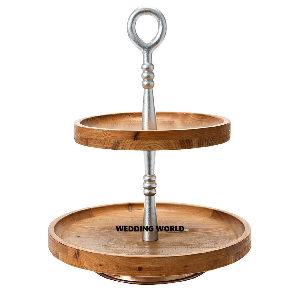 แท่นวางเค้กไม้รูปทรงกลมแบบคลาสสิกยางสองเส้นทำด้วยมือมีสไตล์