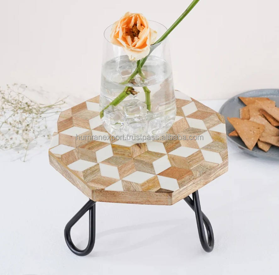 แท่นวางเค้กทำด้วยมือทำจากไม้ธรรมชาติสำหรับวันพ่อวันเกิดและของตกแต่งงานเลี้ยงปีใหม่จากอินเดีย