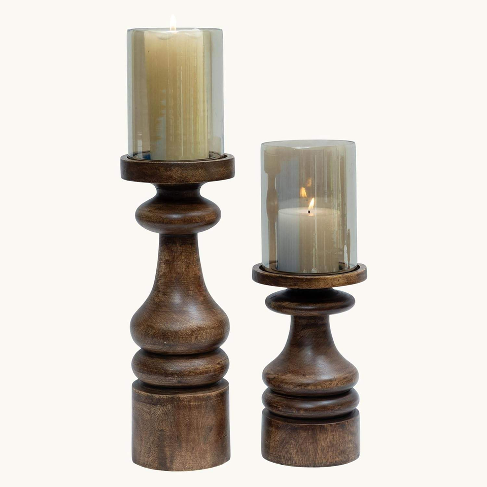 ที่วางเทียนไม้-ชุด 2 ชิ้น เป็นมิตรกับสิ่งแวดล้อม สำหรับเชิงเทียนไม้ ดีไซน์คลาสสิกวินเทจ ผิวขัดเงา สำหรับตกแต่งบ้าน