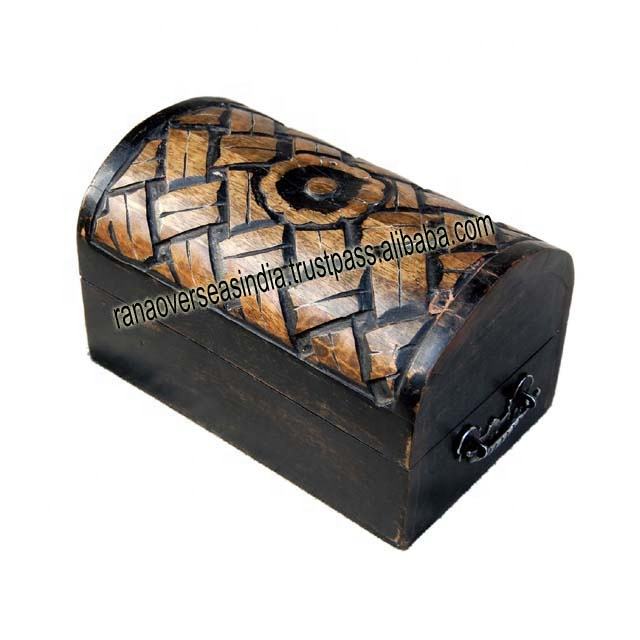 กล่องเก็บเครื่องประดับและของที่ระลึกทรงครึ่งวงกลมแกะสลักไม้