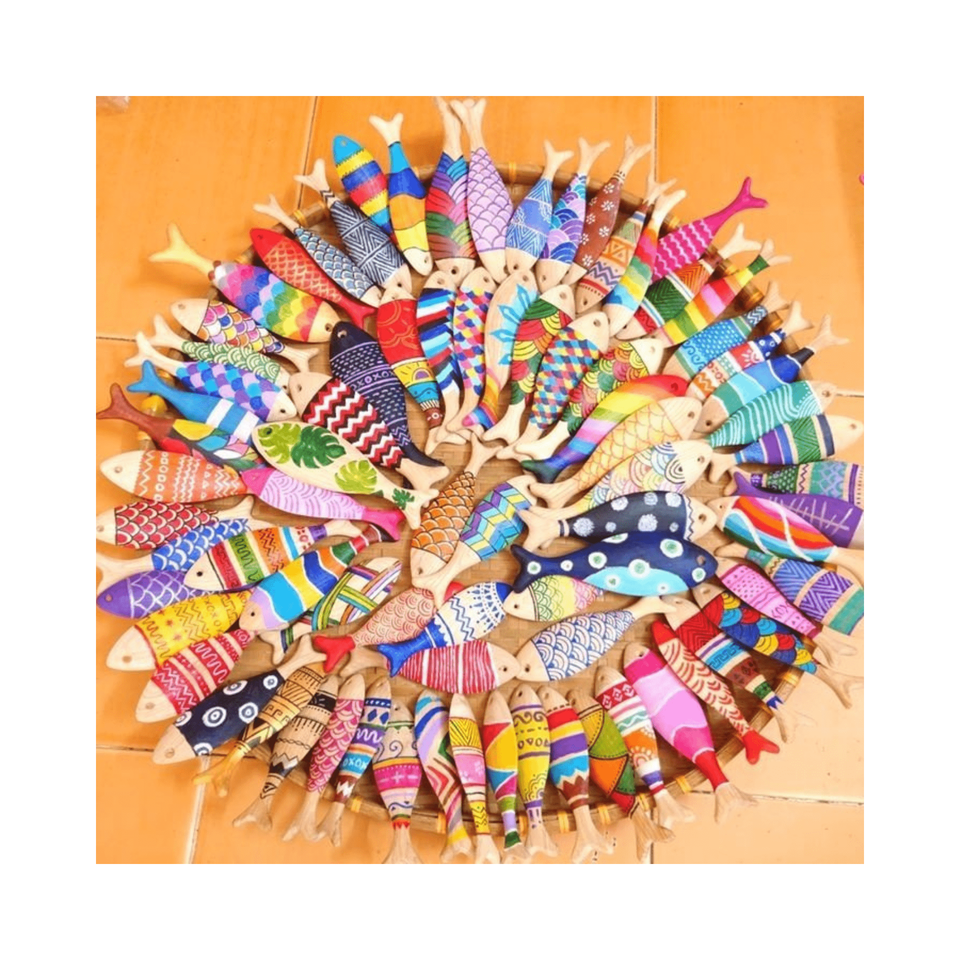 ศิลปะแกะสลักจากไม้ด้วยลวดลายดั้งเดิมหลายแบบที่ผลิตในเวียดนาม // ปลาไม้สำหรับตกแต่งวาดปลาที่ทำจากไม้