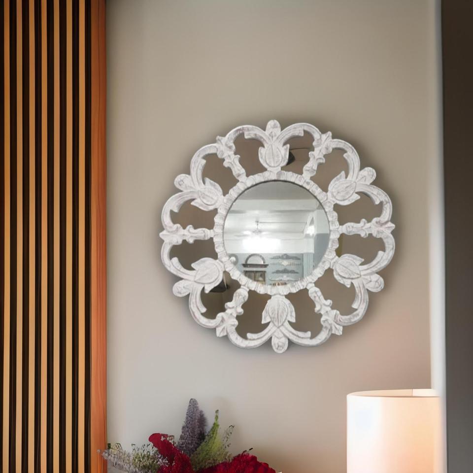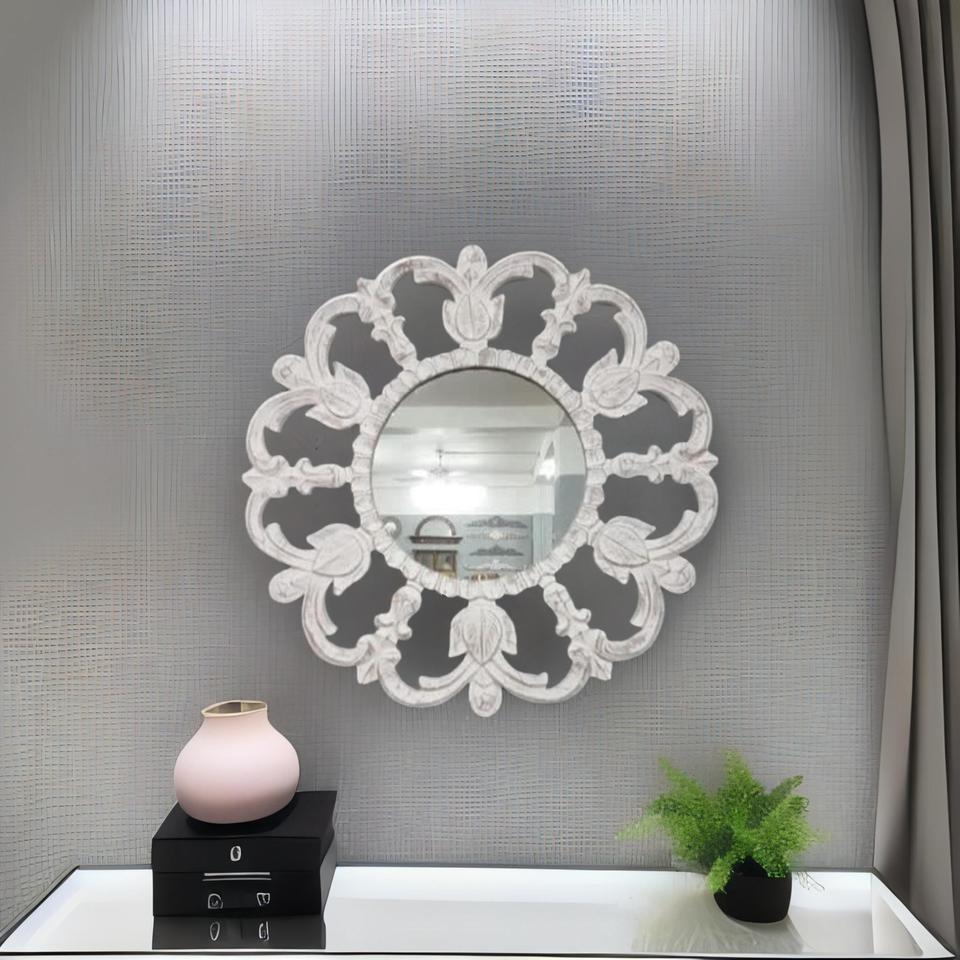 กระจกผนังกระจก MDF แกะสลักไม้สำหรับตกแต่งผนังกระจกติดผนังหรูหราสำหรับห้องนั่งเล่นห้องนอนห้องพักของตกแต่งบ้าน