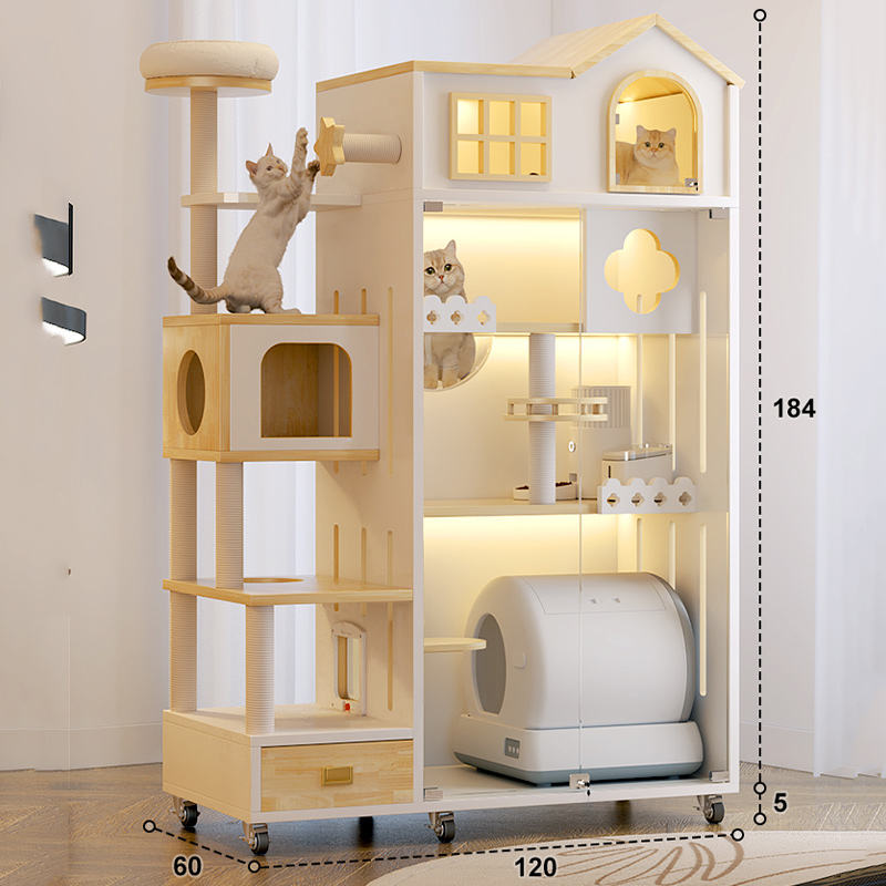 บ้านกรงแมวไม้ บ้านสัตว์เลี้ยงแบบกำหนดเอง กรงแมววิลล่าขนาดใหญ่ บ้านแมวในร่มขนาดใหญ่