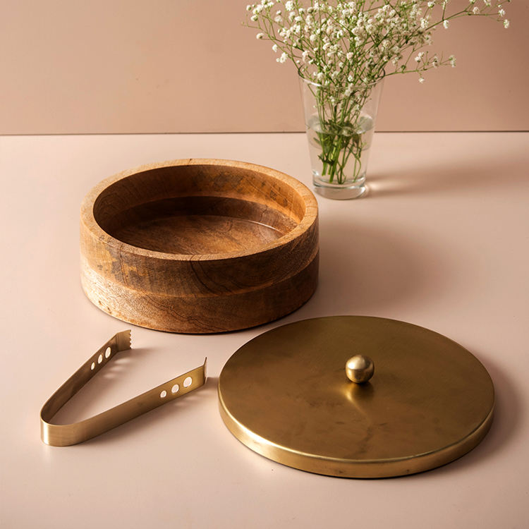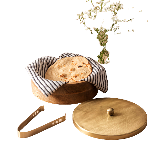กล่องไม้สำหรับใส่โรตี ชปาตี หม้อไฟ และหม้อตุ๋น รูปทรงกลม อุปกรณ์ครัว ภาชนะใส่ชปาตี
