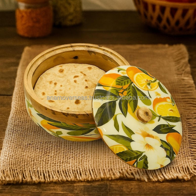 กล่องไม้ใส่โรตีแบบดั้งเดิมพร้อมฝาปิด
