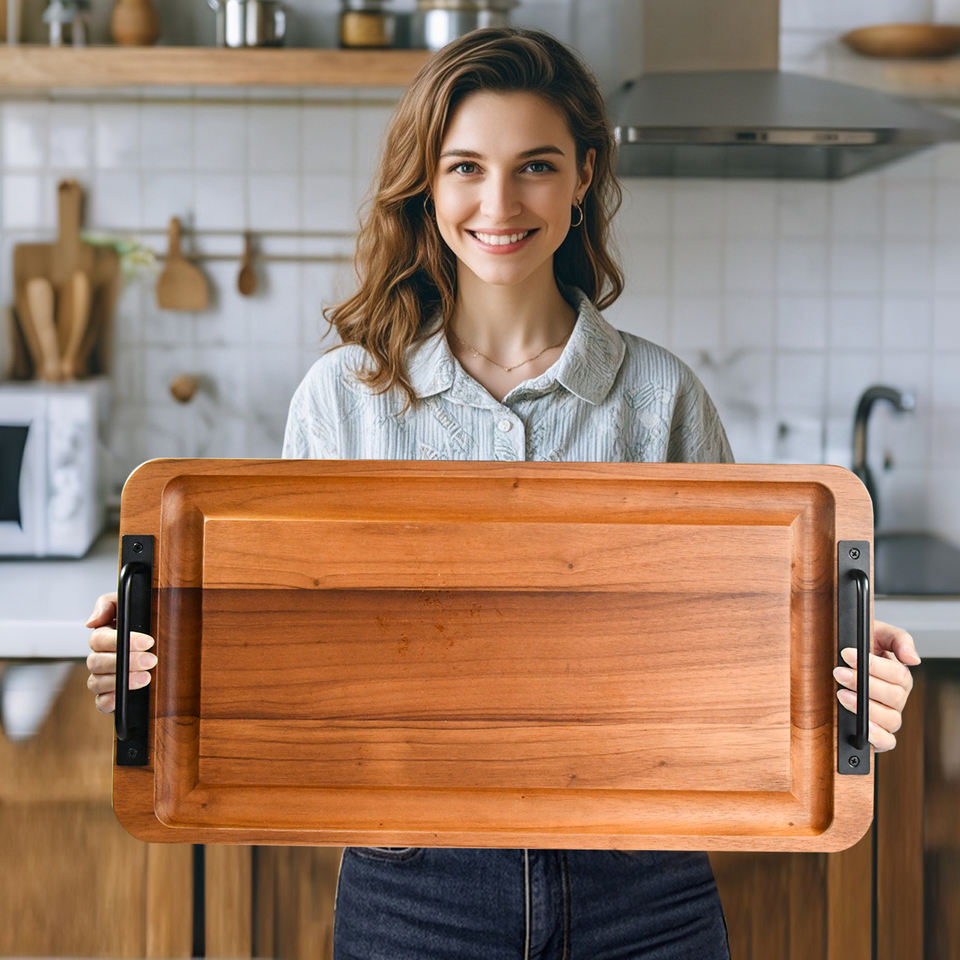 Wooden Charcuterie Board Serving Tray Modern Decorative with Metal Handles Coffee Table Tray for Living Room Bedroom Kitchen