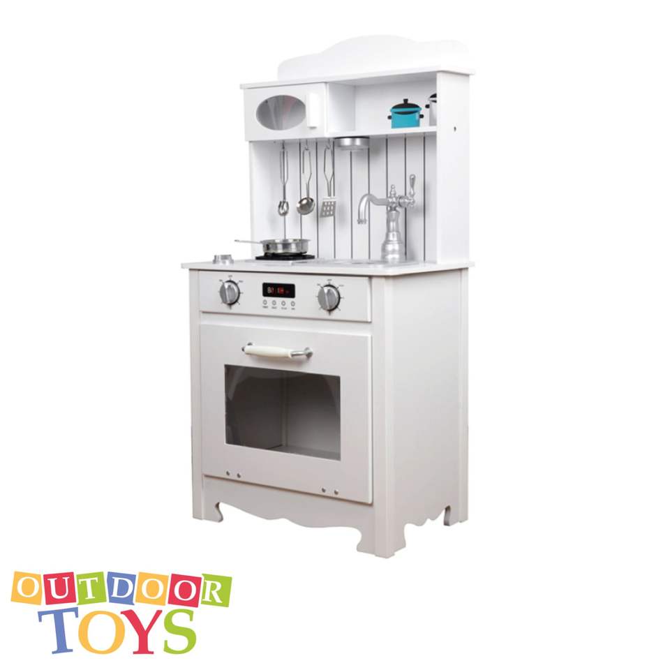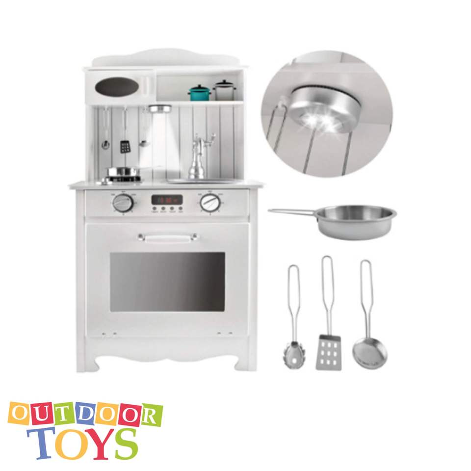 ชุดครัวไม้เด็ก รุ่นอีวา สีขาว สำหรับเด็กผู้หญิง | บ้านจำลองครัว | ของเล่นกลางแจ้งพร้อมจัดส่งจากสเปน