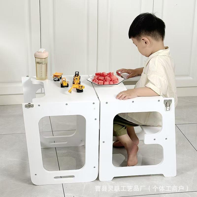 หอคอยการเรียนรู้สำหรับเด็กทำจากไม้ 3 in 1 แบบพับได้ ใช้เป็นเก้าอี้สูงสำหรับใช้ในครัว สีไม้ธรรมชาติ