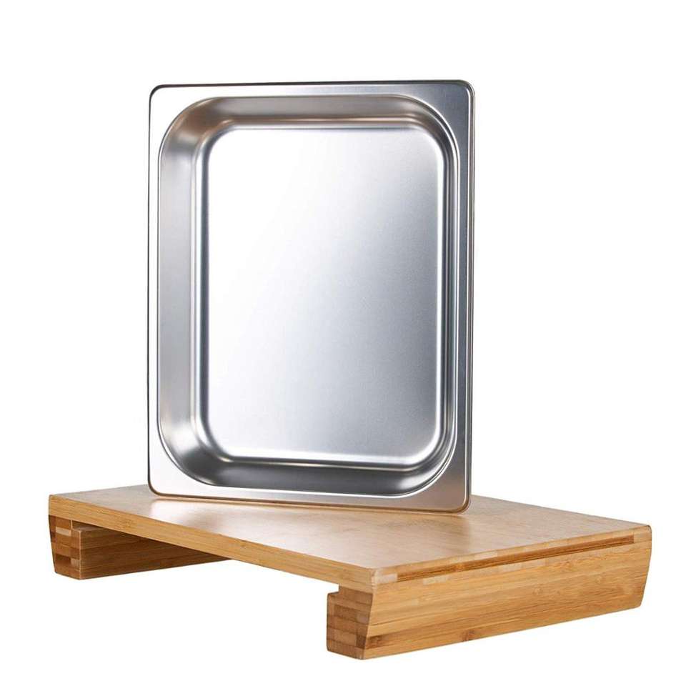 คำอธิบาย:เขียงไม้ไผ่ขนาดใหญ่พร้อมลิ้นชักสแตนเลสแบบเลื่อน