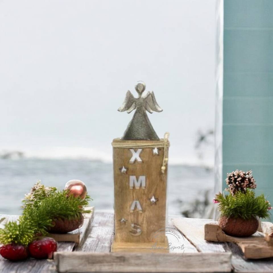 ของตกแต่งโต๊ะรูปนางฟ้าคริสต์มาสทำจากไม้ พร้อมข้อความ XMAS ของตกแต่งบ้านสำหรับเทศกาล สำหรับวางบนโต๊ะกลางหรือชั้นวางของในวันหยุด