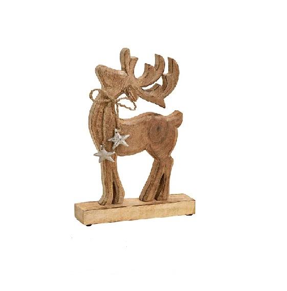 กวางกวางคริสต์มาสไม้ด้วยไม้มะม่วงคุณภาพสูงและโบว์อลูมิเนียมบนคอคุณภาพดี
