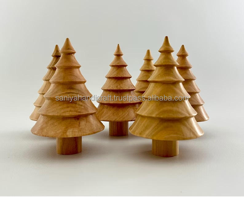 ต้นคริสต์มาสไม้ งานฝีมือ เป็นมิตรกับสิ่งแวดล้อม ขัดเงา สไตล์โบราณ ปรับแต่งสีและขนาดได้ ผลิตในอินเดีย
