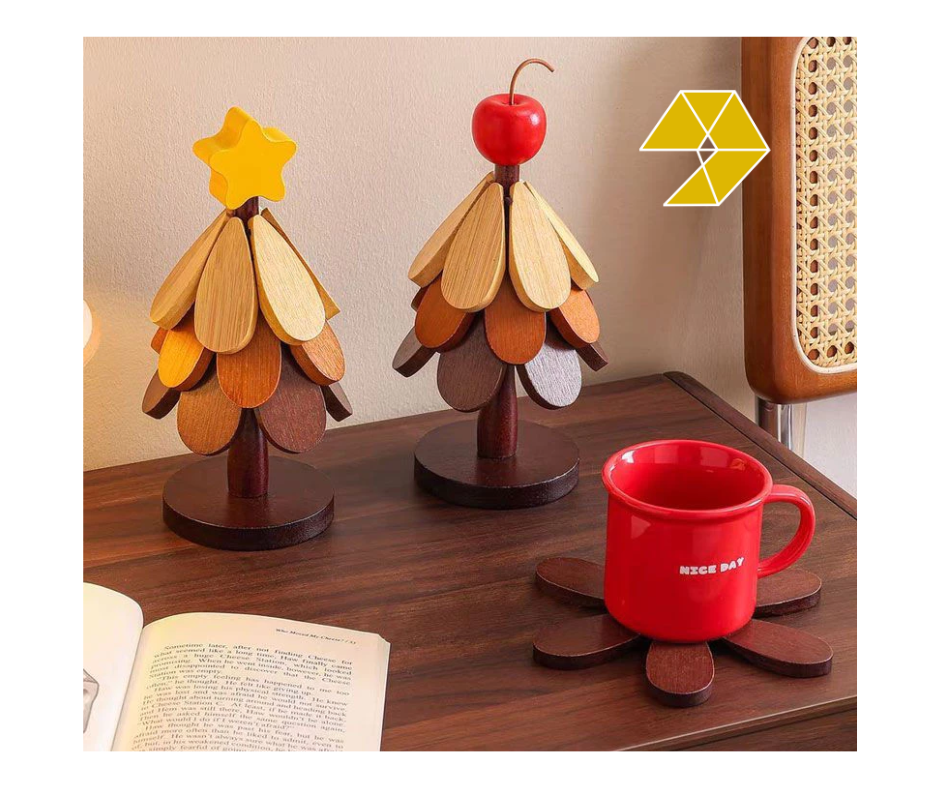 ที่รองแก้วต้นคริสต์มาสทำจากไม้