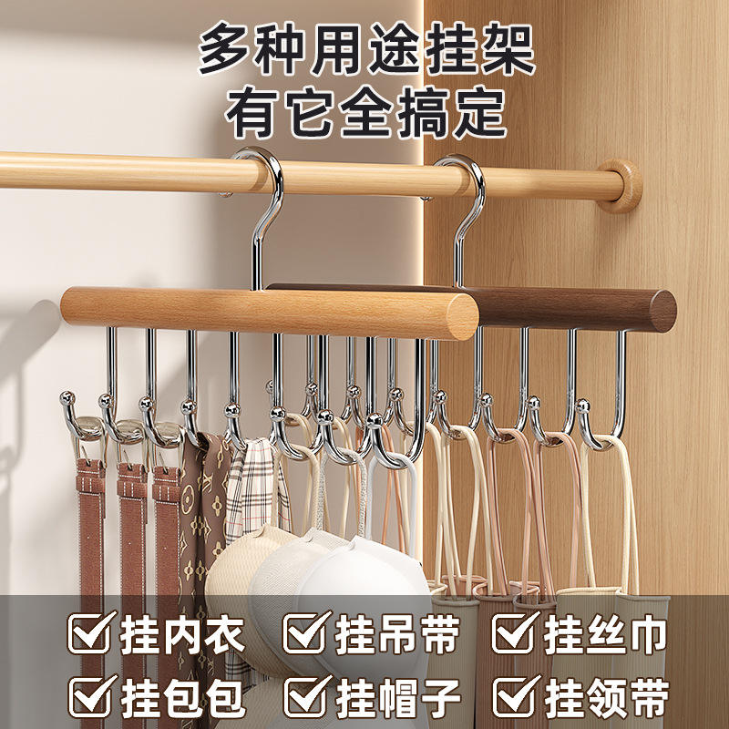 ไม้แขวนเสื้อไม้พร้อมตะขอ 8 อันสำหรับชุดชั้นในและเสื้อกั๊ก ชั้นวางของอเนกประสงค์สำหรับใช้ในตู้เสื้อผ้า