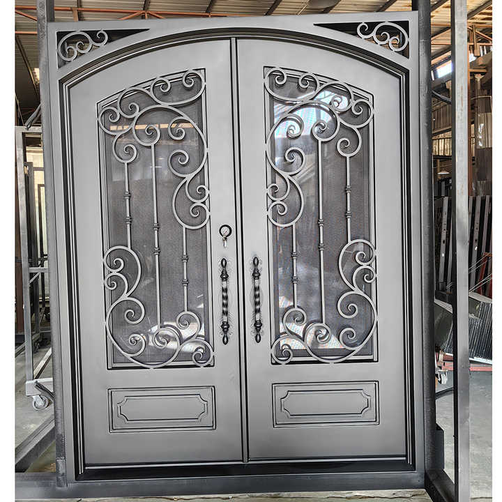 ตัวแบ่งความร้อนประตูทางเข้าเหล็กดัดสีไม้