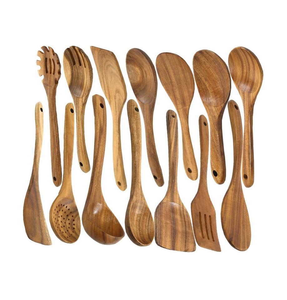 ชุดช้อนไม้สำหรับทำอาหารทำจากไม้สักเรียบผิวนุ่มสบายไม่ติดเครื่องใช้ไม้สำหรับทำอาหารง่าย