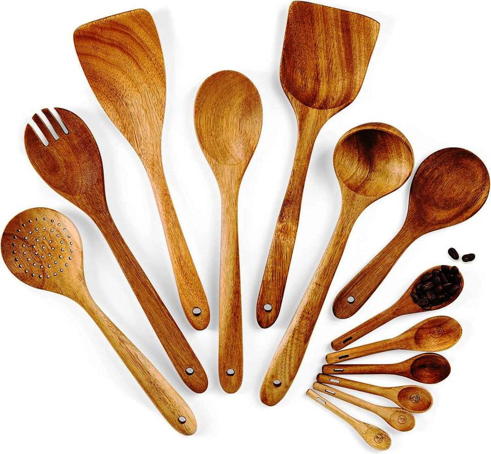ชุดอุปกรณ์ทำอาหารไม้ อะคาเซีย ชุดตักสลัด เป็นมิตรกับสิ่งแวดล้อม ปลอดภัยสำหรับเครื่องล้างจาน อุปกรณ์ทำสลัด สำหรับใช้ในครัวเรือน ผลิตในอินเดีย
