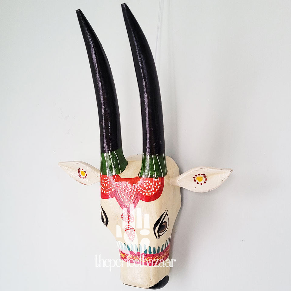 งานศิลปะตกแต่งผนังรูปหัววัวไม้สีขาวสไตล์อาร์ตเดโค สำหรับตกแต่งบ้าน สำนักงาน งานดิวาลี และวันครบรอบ