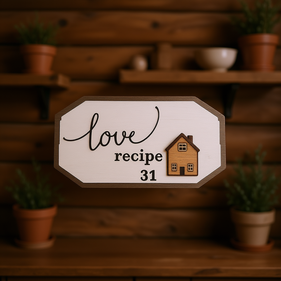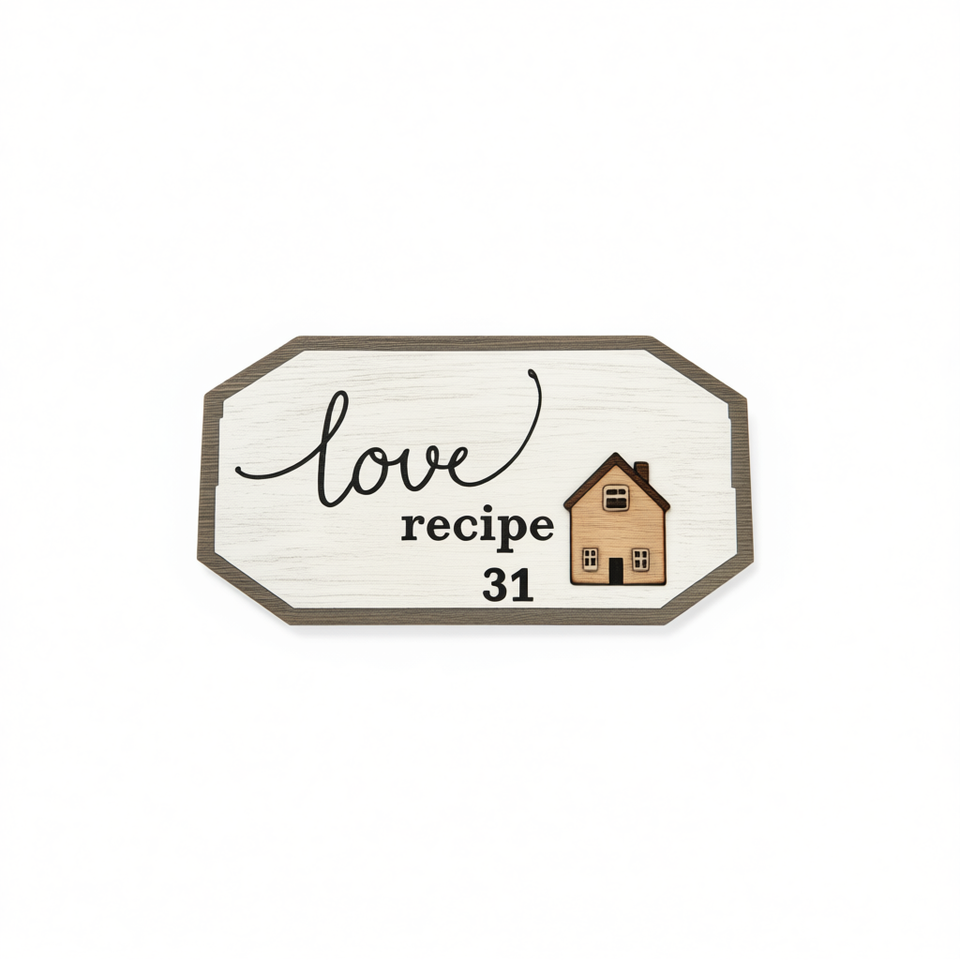 งานฝีมือไม้รูปวงรี ดีไซน์เรียบง่าย สลักลายสูตรความรัก ของตกแต่งบ้าน 12 ชิ้น