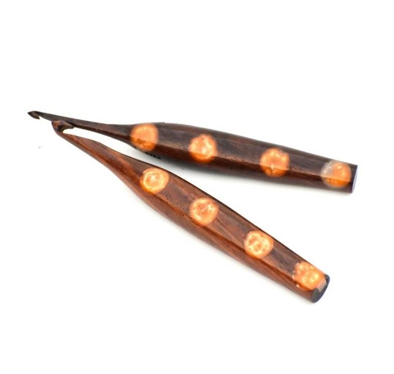 ชุดเข็มโครเชต์ไม้ 7 ชิ้น - ดีไซน์ทันสมัย ทนทาน ทำจากไม้พะยูงและเรซิ่นสีส้ม