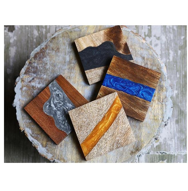 ที่รองแก้วไม้เรซิ่นทรงสี่เหลี่ยมสีธรรมชาติแผ่นรองแก้วลายไม้ดีไซน์ทันสมัยออกแบบได้ตามต้องการ