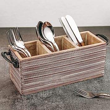 ที่ใส่ช้อนส้อมไม้-อุปกรณ์จัดระเบียบของใช้ที่ทันสมัยและทนทานสำหรับห้องครัวโต๊ะรับประทานอาหารหรือสำนักงาน | กล่องเก็บของอเนกประสงค์